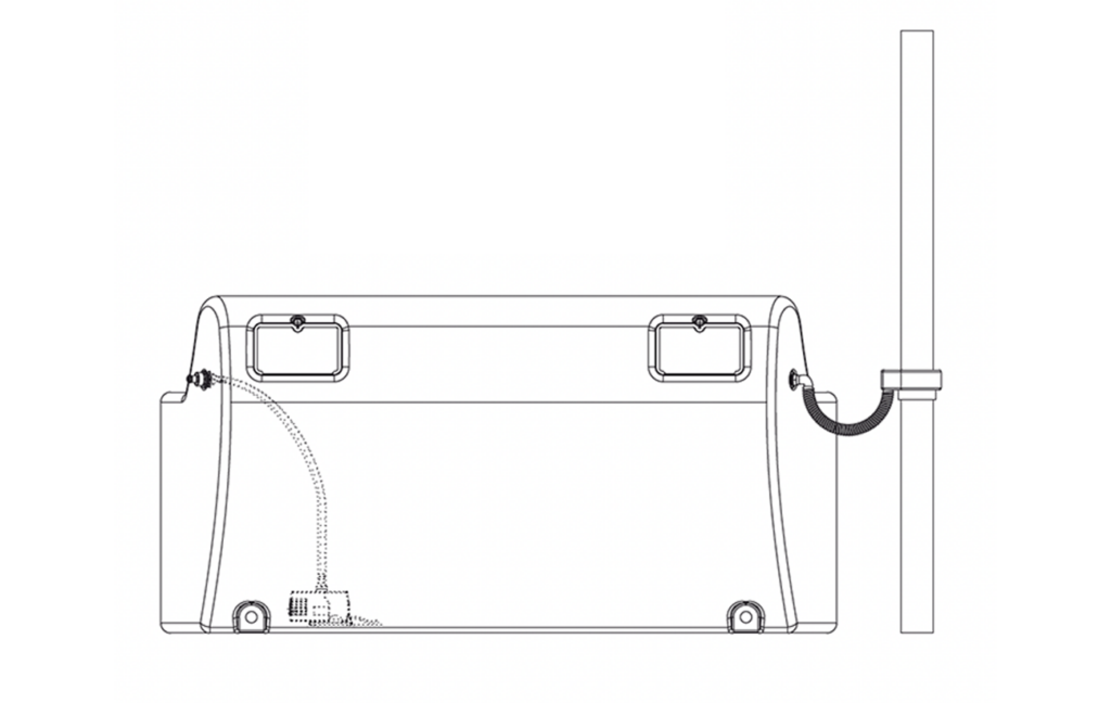 • Snij 1 van de bijgeleverde rubberen tules open zodat deze om de stroomkabel van de pomp past en plaats de tule met kabel in de sleuf van het service deksel en schroef dit deksel weer op de achterzijde van de bank. Plaats de 2de tule in de sleuf van het andere service deksel en schroef deze ook weer op de achterzijde van de bank.